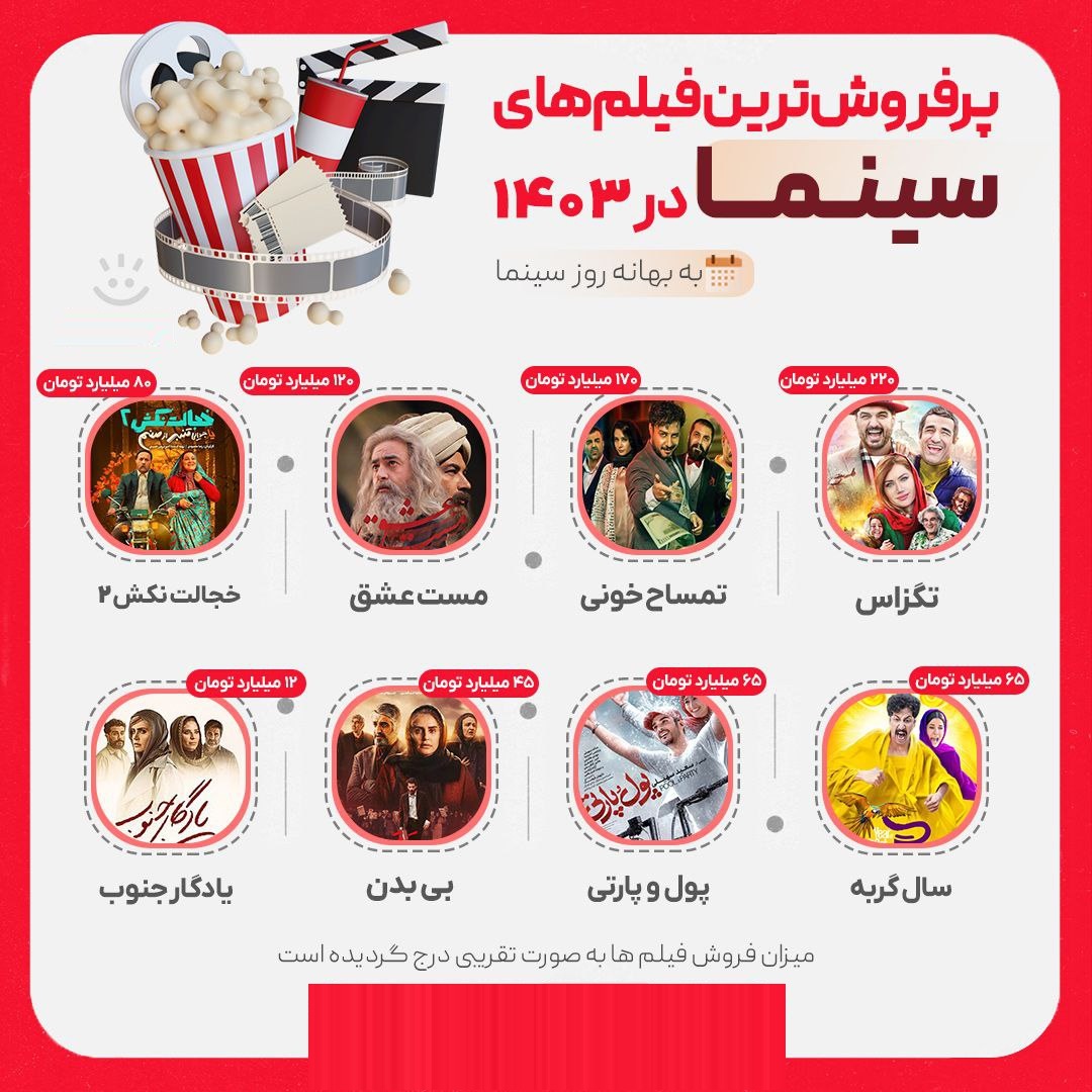 فیلم های پر فروش سال 1403 + (اینفوگرافی)